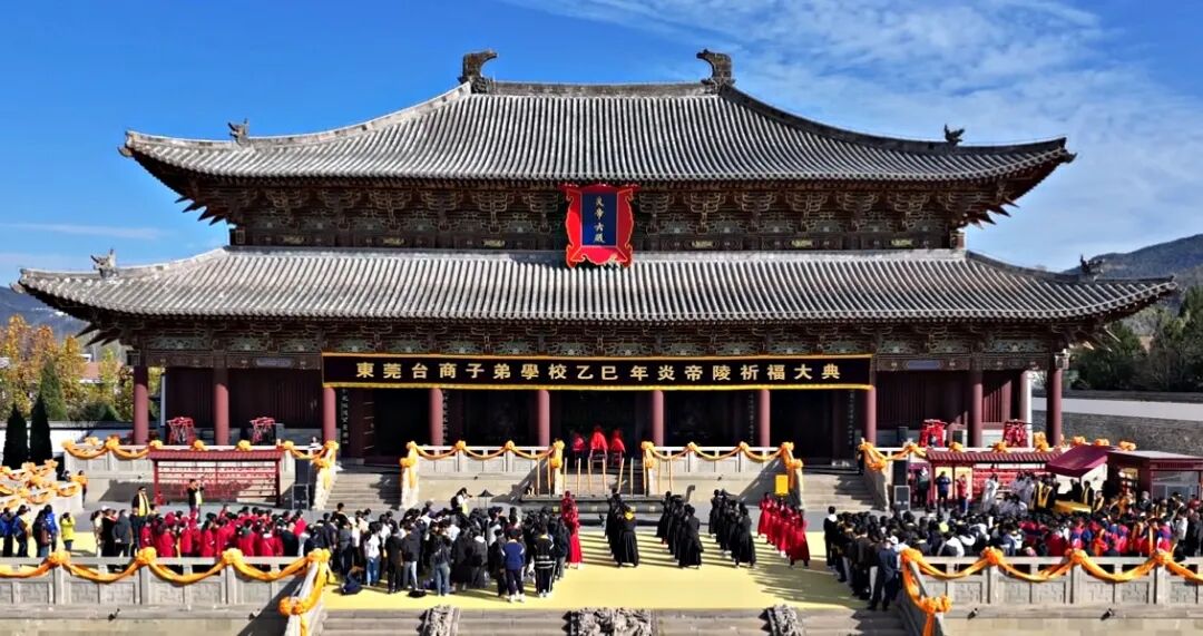 11月15日上午,暖阳映照下的炎帝陵庄严肃穆,东莞台商子弟学校在炎帝陵隆重举行乙巳年祈福大典。东莞台商子弟学校236名师生与来自神农中学、炎帝中学的100余名本地学子齐聚圣地,以寻根拜祖、慎终追远的虔诚之心,共赴这场跨越海峡的文化之约。